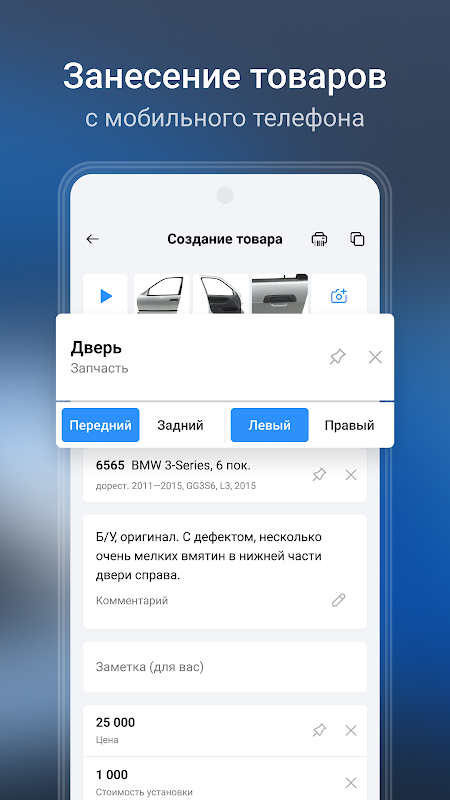 অ্যাপ্লিকেশনটি আপনাকে বাজোন সিস্টেমে পণ্যগুলির ফটো তুলতে, আসা এবং সম্পাদনা করতে ও মঞ্জুরি দেওয়ার অনুমতি দেয়