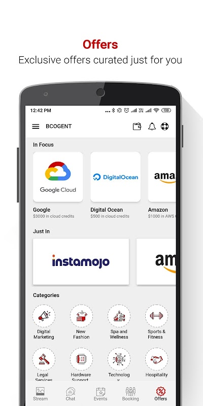 Bcogent app helps members share their personal experiences, collaborate with each other, book meeting rooms conveniently and avail member only discounts.