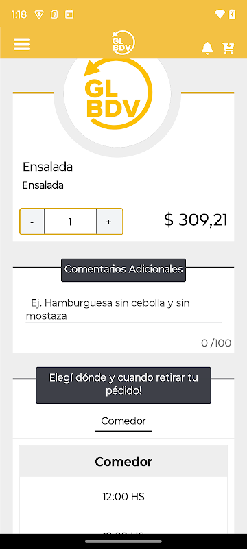 GLBDV এর সাথে, আপনার খাবার বুকিং করা সহজ ছিল না। প্রতিদিনের মেনু, পৃথক খাবার এবং উপলব্ধ পণ্যগুলি ব্রাউজ করুন, আপনার পছন্দের পিকআপ পয়েন্ট এবং সময় চয়ন করুন এবং Mercado Pago ব্যবহার করে অ্যাপের মাধ্যমে সরাসরি অর্থ প্রদান করুন।