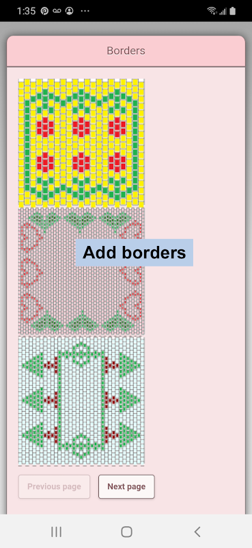 সীমানা আইকন - আপনার প্যাটার্ন যোগ করার জন্য নির্বাচনযোগ্য সীমানা। সীমানা স্বয়ংক্রিয়ভাবে আপনার পুঁতি প্যাটার্ন চারপাশে মোড়ানো.