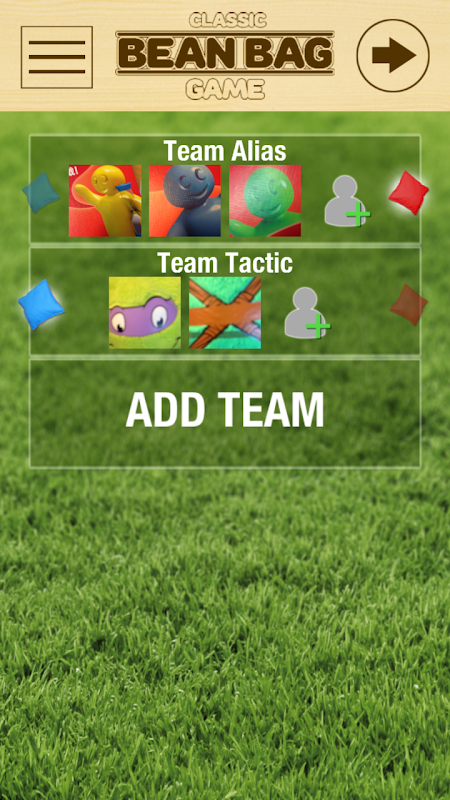 Bean Bag Game Score Tracker let's you create your game, add players or teams, add pictures with your camera and keep track of your game's progress.