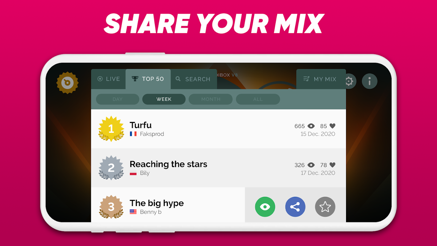 - Quick sharing. Share your music with the world.
