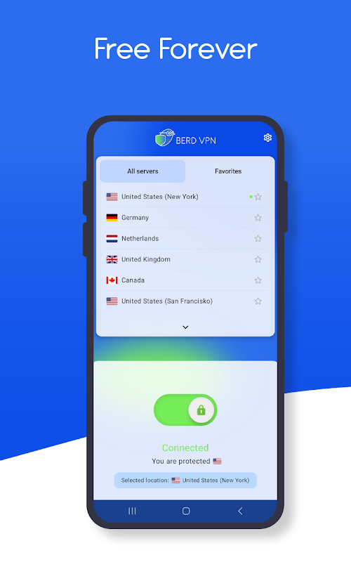 ব্যান্ডউইথ বা গতির সীমাবদ্ধতা ছাড়াই সীমাহীন ডেটা অ্যাক্সেস পান। শুধুমাত্র একটি ট্যাপ দিয়ে, আমাদের সার্ভারগুলির একটিতে সংযোগ করুন এবং BerdVPN কে আপনার ইন্টারনেট ট্রাফিক এনক্রিপ্ট করতে দিন। আমাদের বিস্তৃত সার্ভার নেটওয়ার্ককে ধন্যবাদ, গতির জন্য নিরাপত্তার সাথে আপস না করেই আপনি এখন নিরাপদে আপনার প্রিয় শো এবং সোশ্যাল মিডিয়া প্ল্যাটফর্মগুলি অ্যাক্সেস এবং স্ট্রিম করতে পারেন৷ আপনি আরাম করতে পারেন, কারণ আমাদের সমস্ত প্রিমিয়াম পরিষেবা বিনামূল্যে। আমরা আপনাকে নিবন্ধন করতে, আপনার ব্যক্তিগত ডেটা (যেমন ফোন বা ইমেল) রেখে যেতে বা যেকোনো সময় আপনার ক্রেডিট কার্ডের তথ্য সরবরাহ করতে চাই না। সহজভাবে ডাউনলোড করুন, সহজে ইনস্টল করুন এবং সীমাহীন এবং নিরাপদ ব্রাউজিং উপভোগ করুন৷