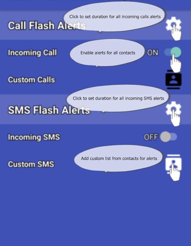 No chances of missing any important Calls and SMS Best Flash Alerts app enable user to customize some specific people in a list from which user wants to receive Flash alerts on Calls or SMS.