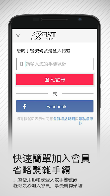 *臉書帳號或手機號碼即可輕鬆當會員。