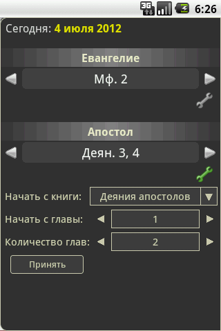 There are also additional navigation options included such as daily Apostle and Gospel using as well as descriptive and convenient calendar.
