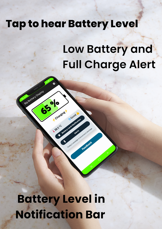 এই অ্যাপটি তাদের জন্য ডিজাইন করা হয়েছে যারা ছোট আকারের কারণে তাদের ফোনের ব্যাটারি লেভেল পড়তে অস্বস্তি বোধ করেন।