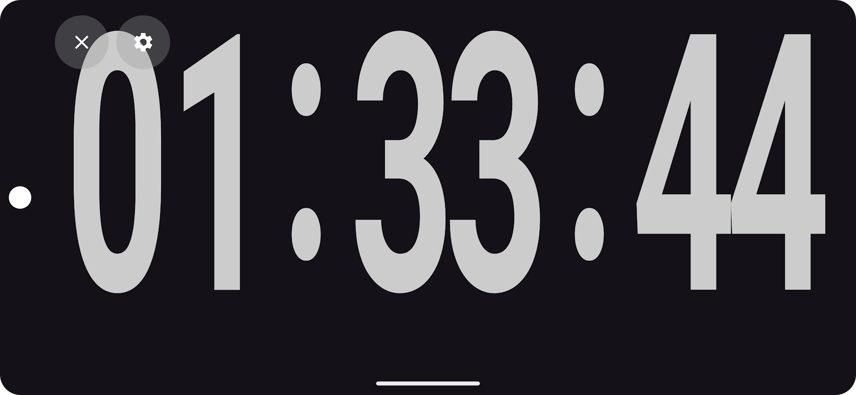 • পূর্ণ-স্ক্রিন সময় প্রদর্শন: সর্বাধিক পঠনযোগ্যতার জন্য অতিরিক্ত-বড় সংখ্যা, এমনকি দূর থেকেও।