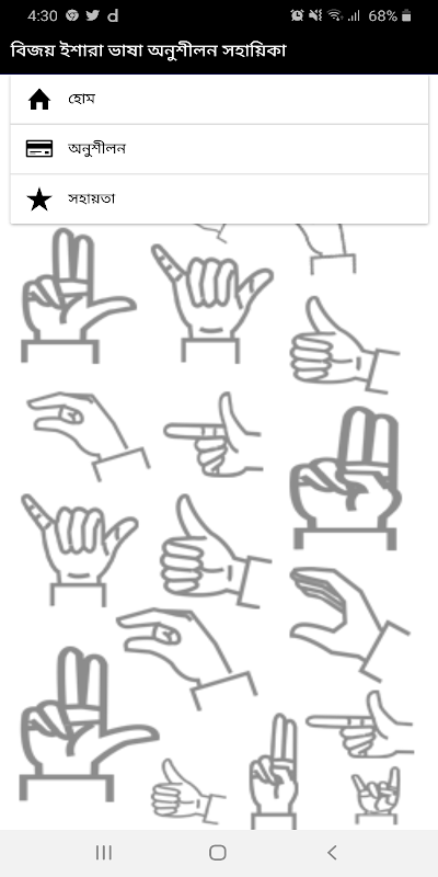 এই অ্যাপ্লিকেশনটির মাধ্যমে এবং শ্রোতাদের প্রতিবেদন ইশারা ভাষা শিখতে হবে এবং বিশদভাবে