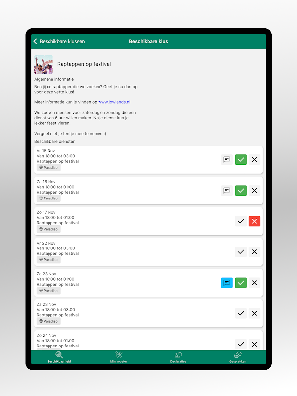 - আপনার শিফটের জন্য চেক ইন করুন