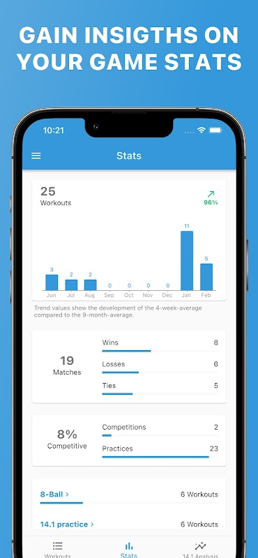 বিলিয়ার্ড ম্যানেজারের সাহায্যে আপনার বিলিয়ার্ড গেমটি অপ্টিমাইজ করুন, যা আপনার ম্যাচ এবং প্রশিক্ষণ সেশন পরিচালনা এবং বিশ্লেষণের জন্য চূড়ান্ত অ্যাপ। আপনি সবেমাত্র শুরু করছেন বা অভিজ্ঞ খেলোয়াড়, এই অ্যাপটি আপনাকে আপনার অগ্রগতির উপর নজর রাখতে এবং আপনার দক্ষতা উন্নত করার উপর মনোযোগ দিতে দেয়।
