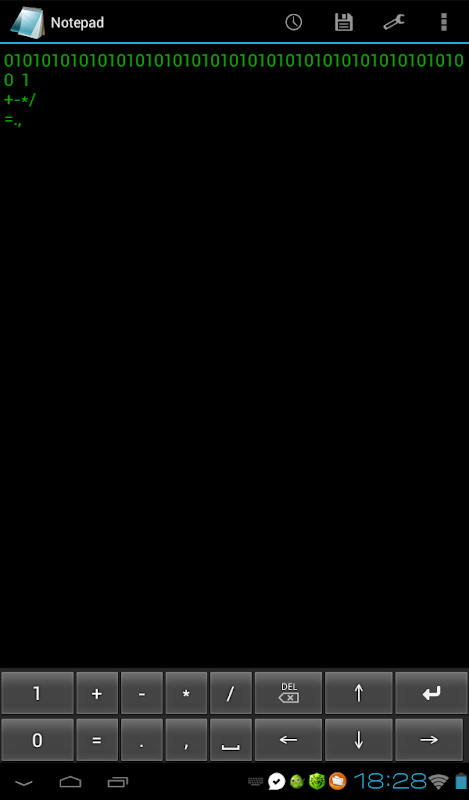 আপনি "0", "1", "+ - * / =।," এবং একটি স্থান লিখতে পারেন।