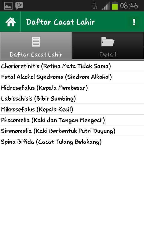 Teratogen adalah aplikasi yang memuat informasi mengenai agen-agen teratogen dan cacat lahir. Agen teratogen adalah substansi lingkungan yang dapat menyebabkan cacat lahir. Teratogen merupakan bagian dari ilmu teratologi yakni ilmu yang mengkaji mengenai cacat lahir. Dalam aplikasi ini, juga menggambarkan dan mendeskripsikan periode-periode sensitif masa kehamilan terhadap agen teratogen. Dengan adanya aplikasi ini, dapat memberikan informasi dan pengetahuan mengenai cacat lahir dan penyebab cacat lahir sehingga dapat mengurangi angka kasus bayi cacat lahir yang terjadi.