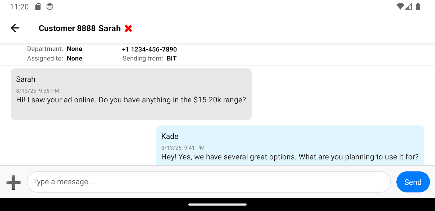 • বিদ্যমান কথোপকথনের থ্রেডগুলিতে গ্রাহক বা সম্ভাবনা বরাদ্দ করুন।