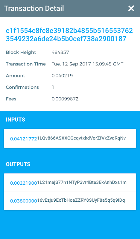 Explore bitcoin blockchain easily without having a need to download blockchain. Search addresses, transactions (txids), block number and hashes easily. This app is lightweight and minimalistic and takes few mbs of storage. This app requires active internet connection to run.