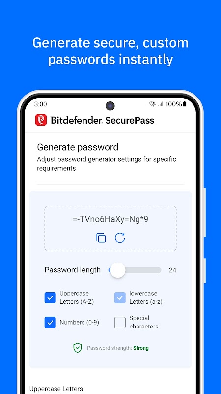 Bitdefender SecurePass এমন ব্যবহারকারীদের জন্য ডিজাইন করা হয়েছে যারা গোপনীয়তাকে মূল্য দেয় এবং তাদের অনলাইন পরিচয়ের জন্য শীর্ষ-স্তরের সুরক্ষা প্রয়োজন। একটি শক্তিশালী এবং স্বজ্ঞাত পাসওয়ার্ড ম্যানেজার হিসাবে, সিকিউরপাস নিরাপত্তার সাথে আপস না করেই আপনার ডিজিটাল জীবন পরিচালনা করার একটি বিরামহীন উপায় অফার করে। আপনি অনলাইনে কেনাকাটা করছেন, কাজের অ্যাকাউন্টগুলি পরিচালনা করছেন বা ব্যক্তিগত পাসওয়ার্ডের ট্র্যাক রাখছেন না কেন, সিকিউরপাস আপনার পিছনে রয়েছে!