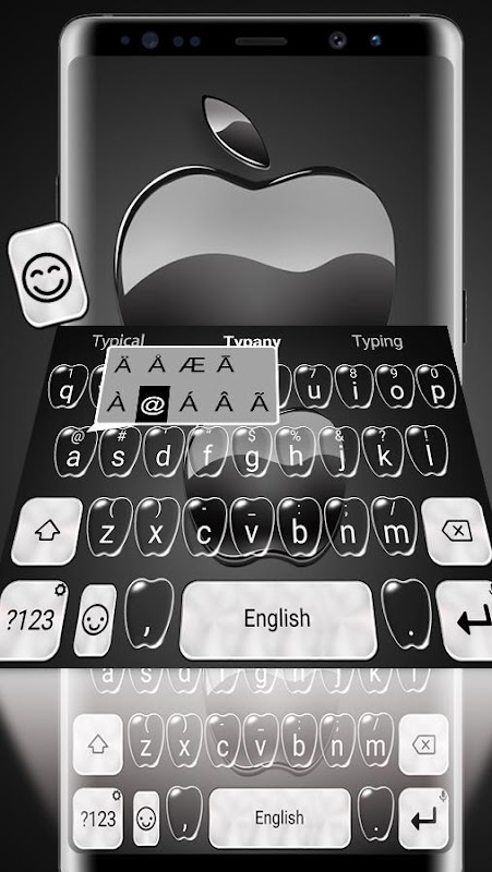 • New Free Typany Black Apple keyboard theme will bring to your keyboard & text input a real new looks & feel. Check this FREE personalized design for your Typany emoji Keyboard right now!