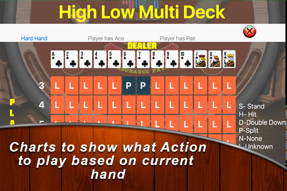 Choose from several Blackjack or 21 strategies including Basic Strategy
