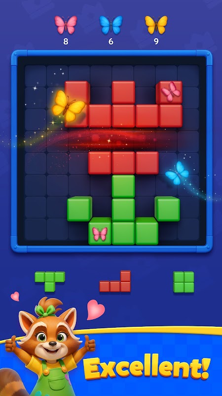 🔹 ক্লাসিক ব্লক পাজল গেমপ্লে - লাইনগুলি পূরণ করতে এবং বোর্ড পরিষ্কার করতে ব্লকগুলি টেনে আনুন এবং ফেলে দিন।