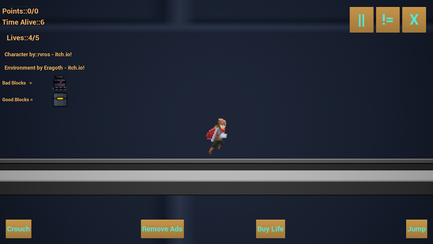 Jump and slide your way through a harrowing adventure as you attempt to collect the most points and survive the longest!