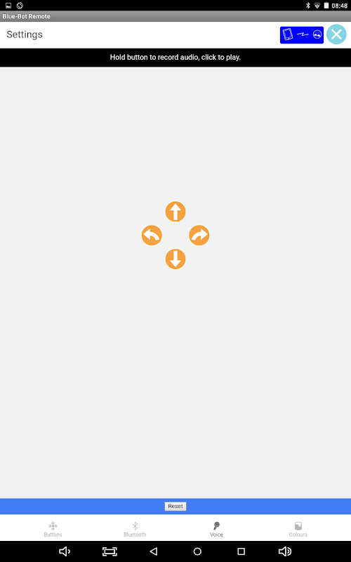 This app allows the TTS Blue-Bot to be remote controlled from your tablet. Large buttons are provided letting you move Blue-Bot one step at a time.