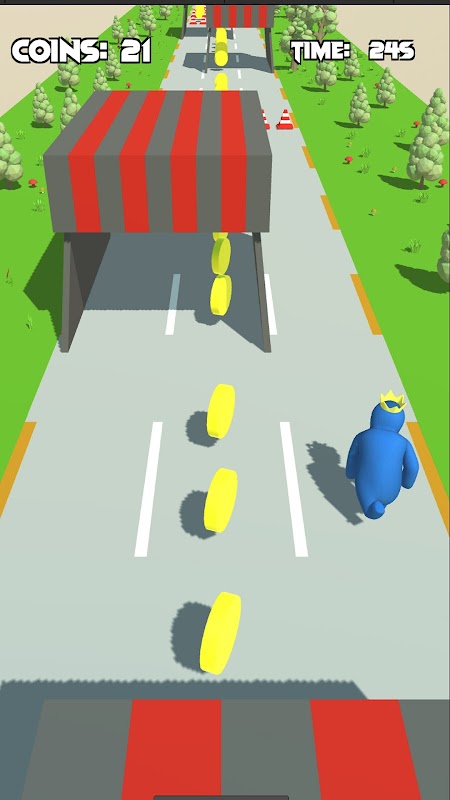 Save the blue rainbow from obstacles by running, jumping and collecting coins.