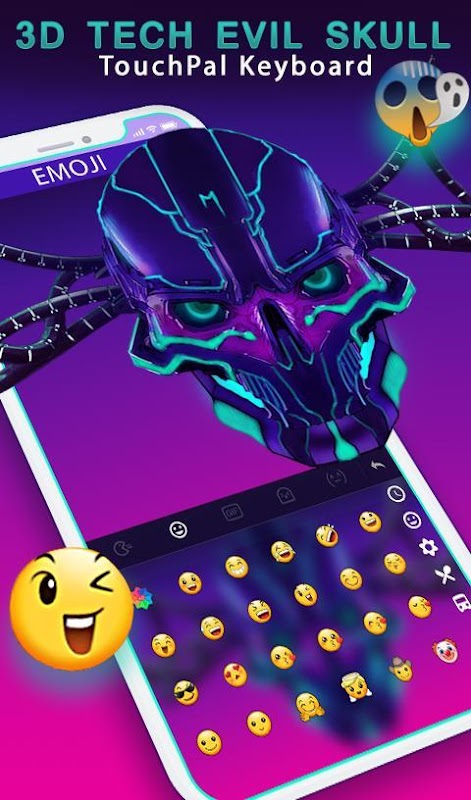New Free Blue Tech 3D Evil Skull keyboard theme for TouchPal Emoji Keyboard.