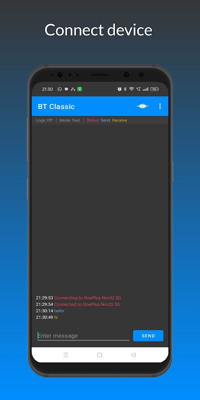 এই অ্যাপটি আপনাকে অন্যান্য ব্লুটুথ ডিভাইসের সাথে স্ক্যান, সংযোগ এবং যোগাযোগ করতে দেয়।