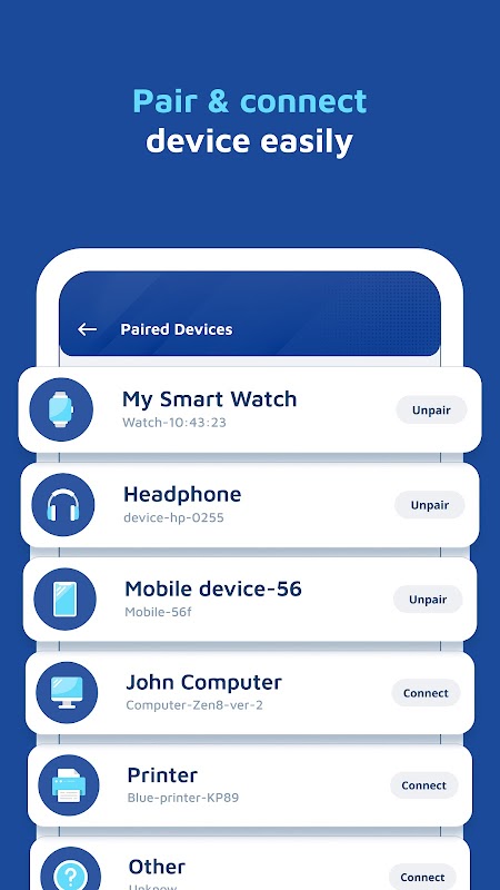 - এটি ব্লুটুথ সংযোগ পরিচালনার জন্য একটি সুবিধাজনক অ্যাপ। স্বয়ংক্রিয়ভাবে আপনার প্রিয় ডিভাইসের সাথে সংযোগ করুন, অগ্রাধিকার তালিকা সেট করুন এবং বিভিন্ন ট্রিগার ব্যবহার করে আপনার ব্লুটুথ নিয়ন্ত্রণ করুন।