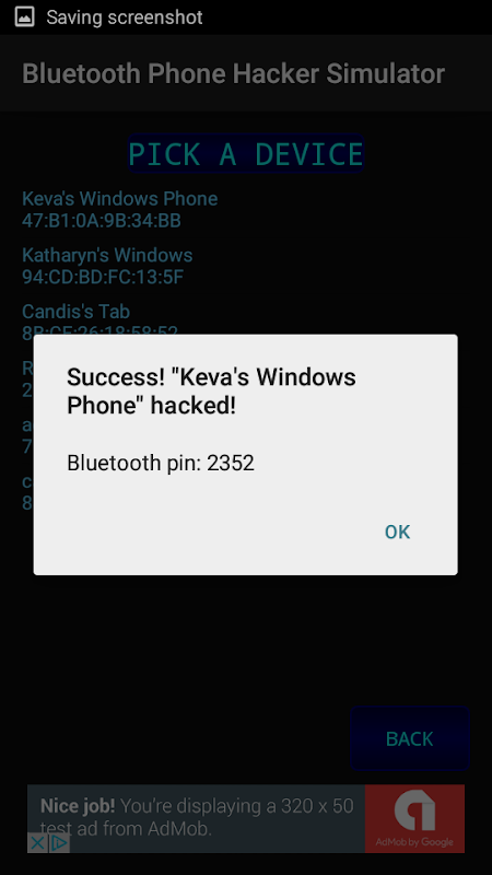 You can then select one of the devices from the list, a hacking progress bar will appear and you can show your friends that you are hacking into the phone!