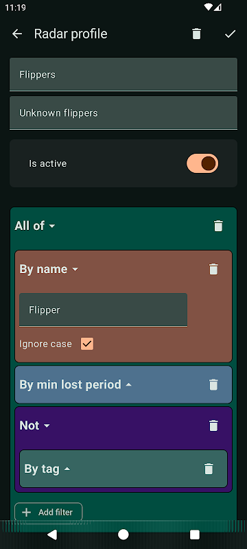 অ্যাপটি আপনাকে যৌক্তিক অপারেটরগুলির সাথে রাডারের জন্য নমনীয় ফিল্টার তৈরি করতে দেয়। নির্মাতাদের আলাদা করতে, Apple Airdrop প্যাকেজগুলি অন্বেষণ করতে এবং পরিচিত পরিচিতির সাথে তাদের মেলাতে সক্ষম৷ আপনার চারপাশে স্ক্যান করা BLE ইথারের উপর ভিত্তি করে একটি ডিভাইস আন্দোলনের মানচিত্র তৈরি করুন। উদাহরণস্বরূপ, আপনি একটি নির্দিষ্ট সময়ের মধ্যে দেখেছেন এমন ডিভাইসগুলি অনুসন্ধান করতে পারেন, আপনার হারিয়ে যাওয়া হেডফোনগুলি হঠাৎ আপনার কাছাকাছি উপস্থিত হলে একটি বিজ্ঞপ্তি পাবেন।