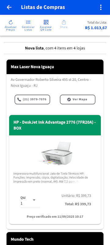 - ফিজিক্যাল স্টোরগুলিতে পণ্যের অফারগুলির জন্য মূল্য তুলনা (বর্তমানে রিও ডি জেনিরো রাজ্যের দোকানগুলিতে কেন্দ্রীভূত, তবে এটি গতিশীল)