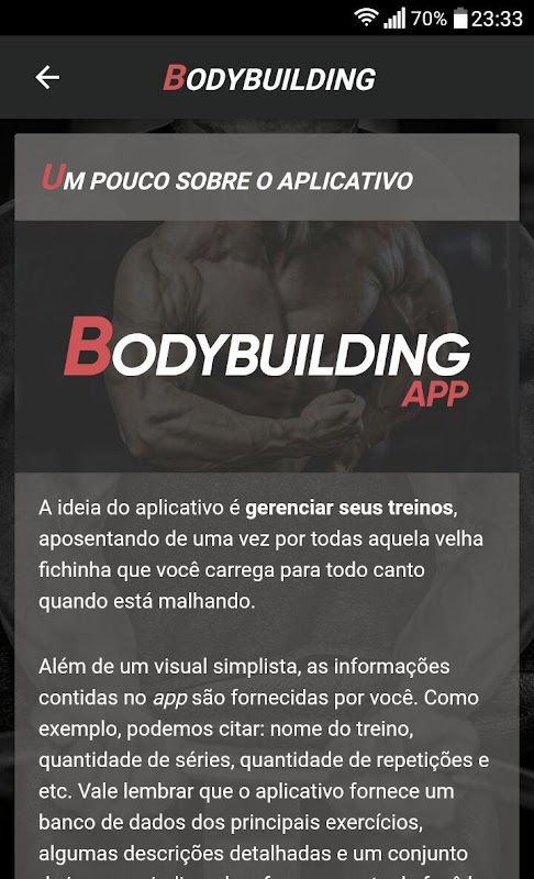 একটি সরল চাক্ষুষ workout আপনি নামের আপনার প্রদত্ত তথ্যের উপর মনোযোগ ছাড়াও, সিরিজ এবং পুনরাবৃত্তির সংখ্যা সংখ্যা; আবেদন প্রধান ব্যায়াম, কিছু বিবরণ এর একটি ডেটাবেস প্রদান এবং এটি করার সঠিক উপায় হল দেখাচ্ছে ছবি একটি সেট বিবরণ।