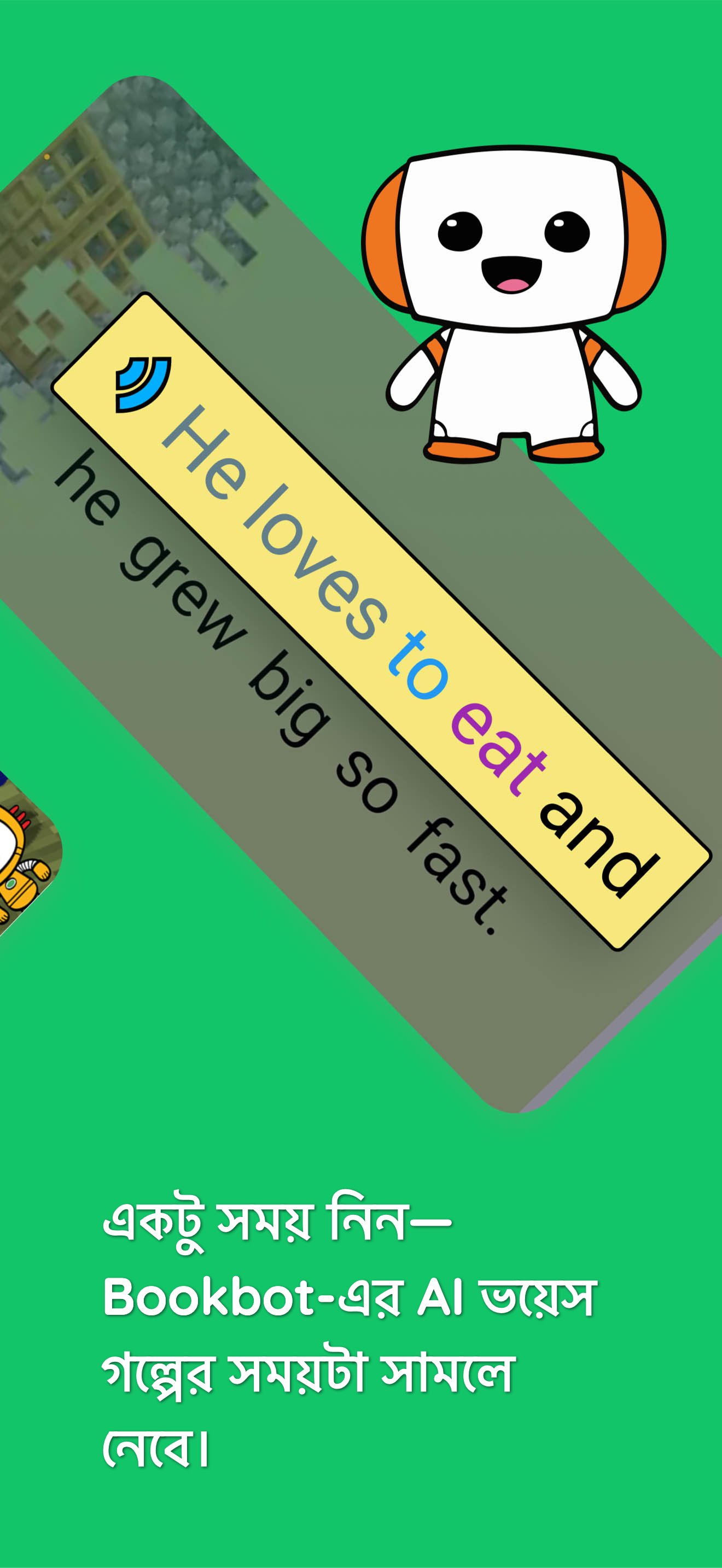 * স্টোরিটাইম মোড — যখন আপনার বিরতি প্রয়োজন তখন বুকবটের বন্ধুত্বপূর্ণ AI ভয়েস জোরে পড়ে শোনায়, ঘুমের গল্পের জন্য উপযুক্ত।