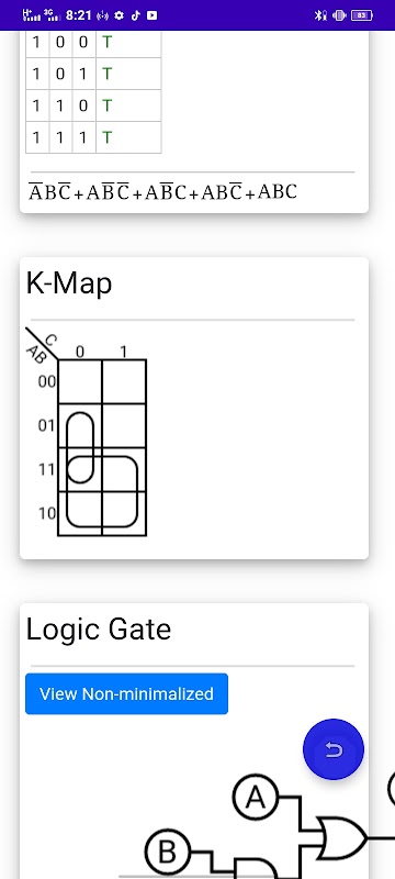 এটি এমন একটি অ্যাপ যা আইন এবং Kmaps ব্যবহার করে বুলিয়ান বীজগণিতকে সরল করতে পারে