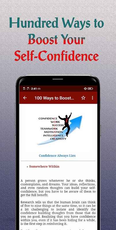 Most raising question about self-confidence is how to boost self-confidence in a short period. Then this answer might be this Boost Your Self Confidence app. With this boost your self-confidence and change your life app you can boost your self-confidence in public speaking, improve your self-confidence in reading, writing, and raising your self-confidence in the economical sector.
