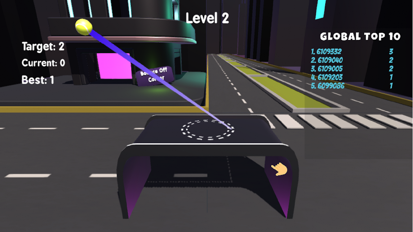 স্বজ্ঞাত গেমপ্লে: বলটি বাউন্স করতে টেনে আনুন এবং লক্ষ্য বাউন্স গণনার লক্ষ্য করুন।