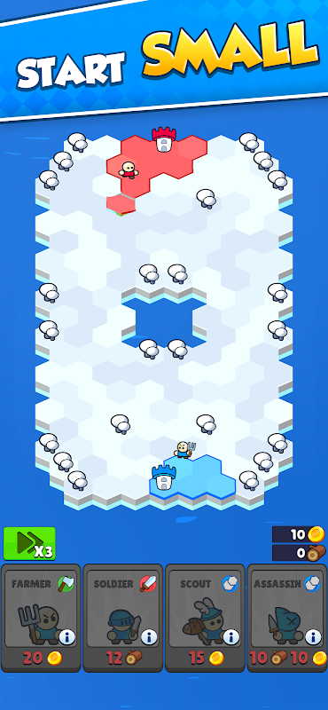 শত্রুর টাইলস দাবি করতে আপনার সৈন্যদের মোতায়েন করুন, সংস্থান চালান এবং তাদের প্রতিরক্ষা দুর্বল করুন। আপনার ক্ষুদ্র সৈন্যদের কর্মে অগ্রসর হতে দেখুন এবং আপনার পক্ষে যুদ্ধের স্কেল টিপ করুন!