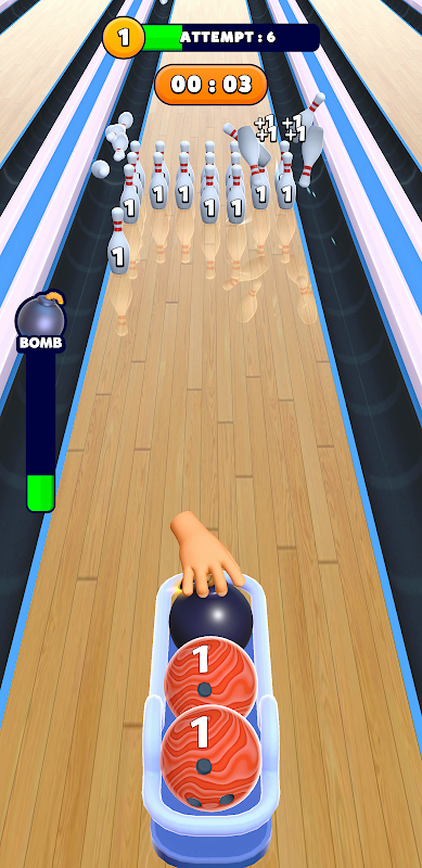 গেমটি শুরু হয় প্লেয়ারকে বোলিং পিনের একটি সূক্ষ্মভাবে সাজানো বিন্যাসের মুখোমুখি হওয়ার সাথে, প্রতিটি সারি চ্যালেঞ্জের একটি নতুন স্তর উপস্থাপন করে এবং জয় করার জন্য একটি ভিন্ন কৌশল প্রয়োজন। টাইমার টিক টিকিয়ে রাখার সাথে সাথে চাপ বাড়তে থাকে, খেলোয়াড়দের তাদের লক্ষ্য পরিমার্জিত করতে এবং হাতের নিক্ষেপের ক্ষমতাকে সর্বোচ্চ প্রভাবে ব্যবহার করতে চাপ দেয়। কিন্তু একটি ধরা আছে – সব পিন সমান তৈরি করা হয় না. স্ট্যান্ডার্ড পিনগুলির মধ্যে, ক্রমবর্ধমান এইচপি সহ বড় পিনগুলি লম্বা হয়ে দাঁড়িয়েছে, শক্তির অতিরিক্ত ডোজ এবং কৌশলকে ছিটকে যাওয়ার দাবি করে।