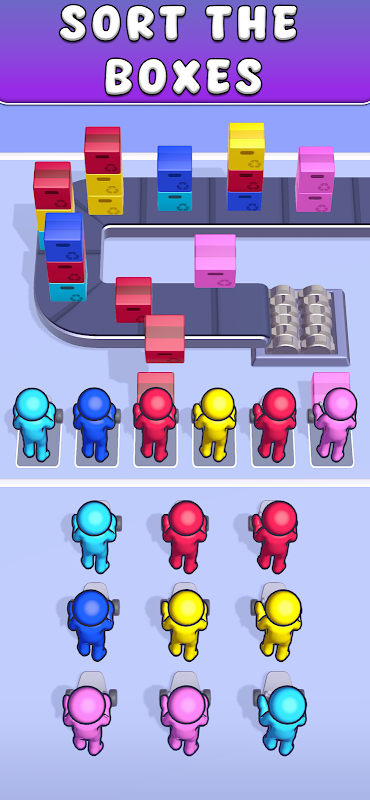 একটি রোমাঞ্চকর, দ্রুত গতির পাজল অ্যাডভেঞ্চারের জন্য প্রস্তুত হন যা আপনার প্রতিচ্ছবি এবং রঙ-মিলন দক্ষতা পরীক্ষা করবে! এই উত্তেজনাপূর্ণ মোবাইল গেমটিতে, আপনার লক্ষ্যটি সহজ: সময় ফুরিয়ে যাওয়ার আগে রঙিন বাক্সগুলিকে তাদের সংশ্লিষ্ট ম্যানিকিনগুলির সাথে মেলান৷ কিন্তু খুব বেশি আরাম পাবেন না—অনেক লম্বা দ্বিধা করুন, এবং বাক্সগুলি শ্রেডারে তাদের সর্বনাশ পূরণ করবে!