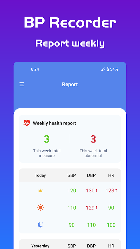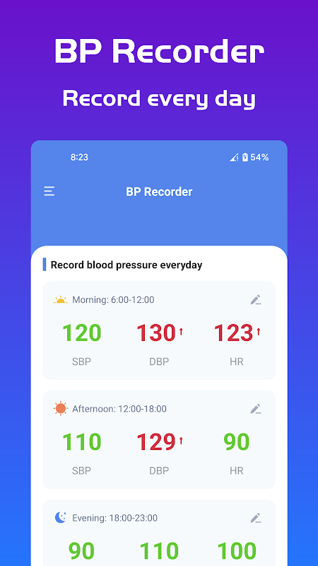*রক্তচাপ (BP) পর্যবেক্ষণ/ট্র্যাকিং এবং হৃদস্পন্দন স্বাস্থ্যের জন্য খুবই গুরুত্বপূর্ণ। এখন আপনি আমাদের রক্তচাপ অ্যাপটি ব্যবহার করতে পারেন আপনার রক্তচাপ এবং হার্টের ছন্দ পরিচালনা শুরু করতে, বিশেষ করে উচ্চ বা নিম্ন রক্তচাপের লোকেদের জন্য।
