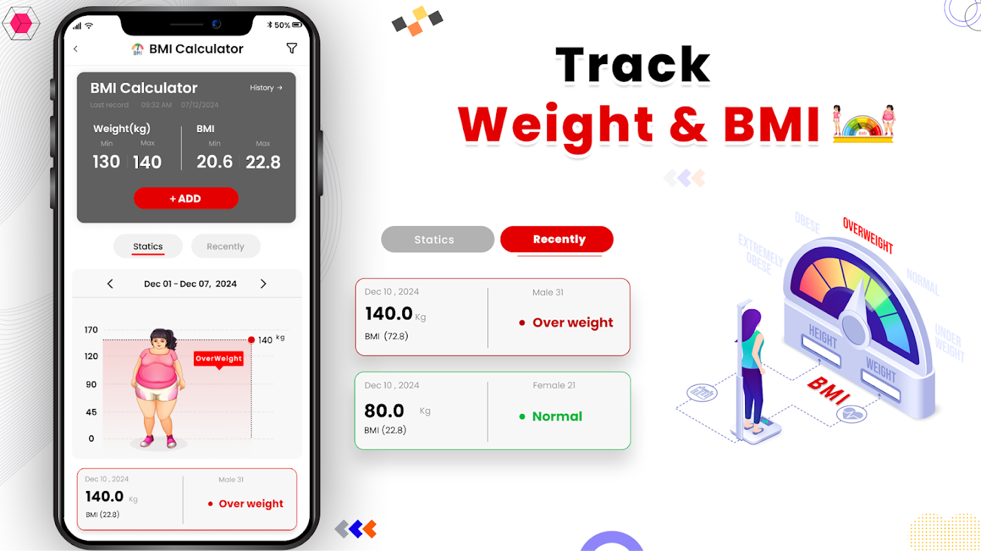 ওজন, তাপমাত্রা, BMI, এবং পদক্ষেপ ট্র্যাক করুন