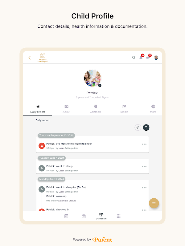 আমাদের অত্যাধুনিক অ্যাপের সাথে শিশু যত্নের সুবিধা এবং ব্যস্ততার ক্ষেত্রে একটি বিপ্লবের অভিজ্ঞতা নিন, বিশেষভাবে আপনার মত পিতামাতার জন্য ডিজাইন করা হয়েছে যারা তাদের সন্তানের মঙ্গলকে অগ্রাধিকার দেন। ডিজিটাল যুগকে আলিঙ্গন করুন যখন আমরা আপনাকে অনলাইন জগতের সাথে আপনার ডে কেয়ার সেন্টারকে নির্বিঘ্নে একীভূত করার অগণিত সুবিধার সাথে পরিচয় করিয়ে দিই।