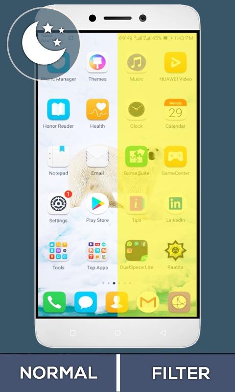 আপনার চোখের দৃষ্টিশক্তি ও মাথা ব্যথা রক্ষা করার জন্য উজ্জ্বলতা ম্লান নাইট মোড একটি অ্যাপ্লিকেশন।