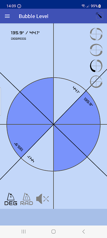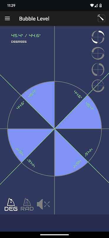 🔄 কোণ ইউনিট: 'বাবল লেভেল' আপনাকে একটি মাপন ইউনিটে সীমিত করে দেয় না। কোণ এবং রেডিয়ান মধ্যে চয়ন করুন, যাতে আপনি যে কোন প্রকল্পের জন্য আপনার প্রয়োজন সম্পর্কে নিশ্চয়তা থাকে।