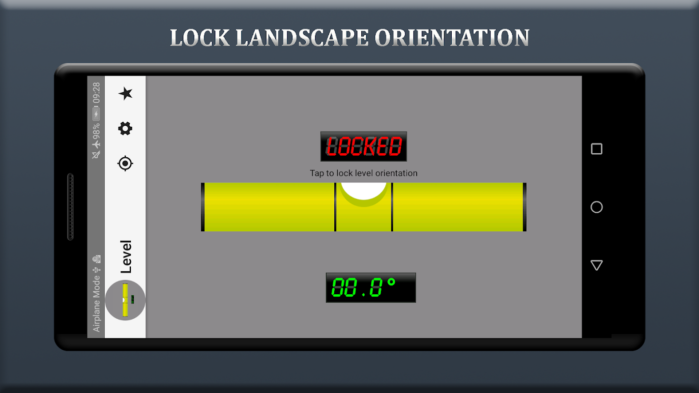 অ্যাপটি একটি বুদ্বুদ স্তর বা শুধু একটি স্তর, একটি যন্ত্র যা একটি পৃষ্ঠ অনুভূমিক (স্তর) নাকি উল্লম্ব (প্লম্ব) তা নির্দেশ করার জন্য ডিজাইন করা হয়েছে৷