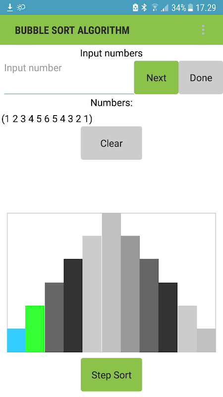 Input numbers and watch how the Bubble Sort Algorithm sorts the numbers.
