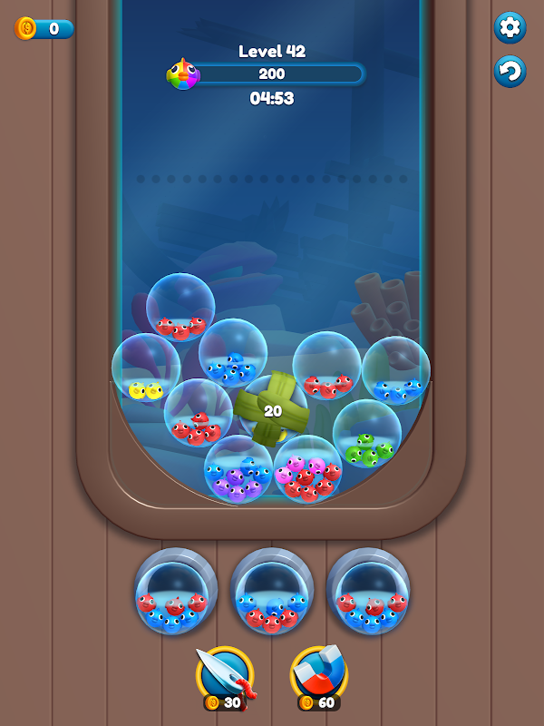 স্তরের লক্ষ্য পূরণের জন্য বুদবুদগুলি সাজান! উপরের ব্যর্থ লাইনটি এড়িয়ে চলুন।
