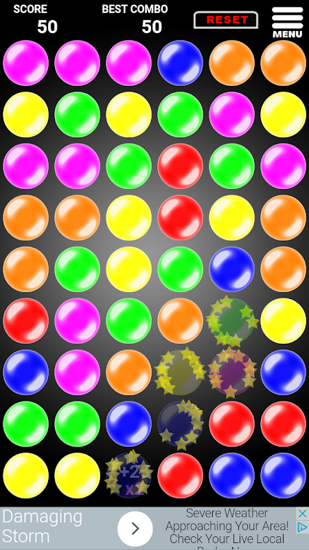 Select 3 or more bubbles of the same color to score!