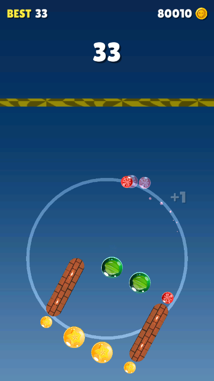 বলটি মোচড়ের চারদিকে ঘুরিয়ে রাখুন এবং স্কোর করতে একই রঙের বস্তুগুলিকে আঘাত করুন, ভিন্ন রঙের সাথে এড়ান!